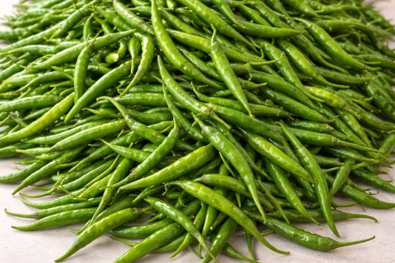 Green Fields Fresh Green Chilies are carefully sourced from quality farms to deliver vibrant color, crisp texture, and authentic heat. Naturally grown and handpicked at the right maturity, these chilies add a bold flavor and fresh aroma to every dish. Ideal for daily cooking, they enhance curries, stir-fries, chutneys, and garnishing with consistent freshness and quality you can trust.